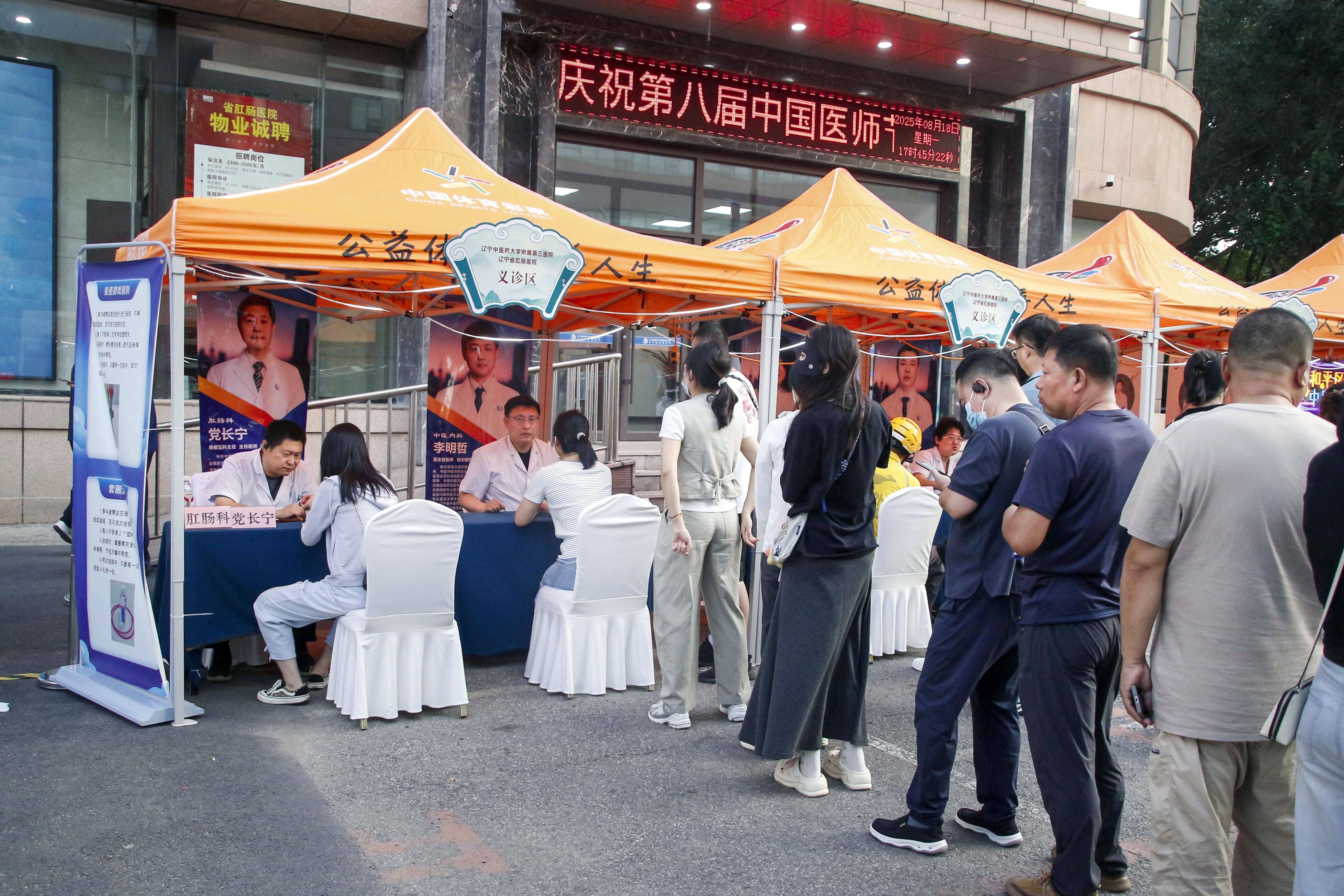 彩蝶园东侧的辽宁省肛肠医院门前,中医药夜市正在同步进行。来自辽宁中医药大学附属第三医院、沈阳市中西医结合医院暨沈阳市第七人民医院、和平区中医院、和平区南市场社区卫生服务中心的专家团队坐诊,为居民送上了涵盖肛肠科、骨科、内科、康复科等多学科的专业义诊服务。居民还可沉浸式体验耳穴疗法、温通罐、脐灸、平衡火罐等中医特色疗法,选购驱蚊水、艾草薄荷膏、香囊等中医药文创产品,参与投壶等趣味活动,感受中医药文化的独特魅力。