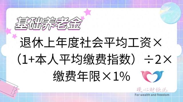 ①基础养老金部分,等于退休上年度社平工资×(1+本人平均缴费指数)÷2×缴费年限×1%。